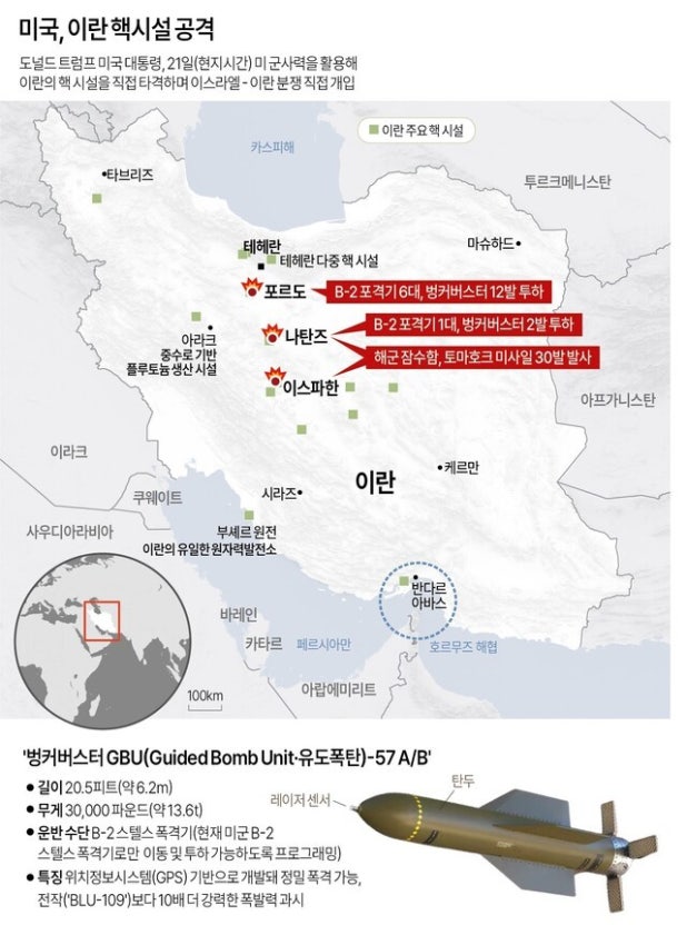 이란의 보복 이후, 미군은 자국 중동 기지와 이스라엘 방어 명분으로 이란 군사기지를 정밀 타격했습니다.