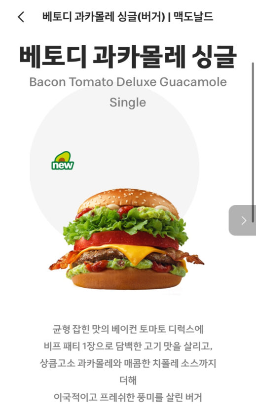 베토디 과카몰레 버거는 최근 출시된 맥도날드 신메뉴 중에서 가장 반응이 좋은 메뉴 중 하나입니다.